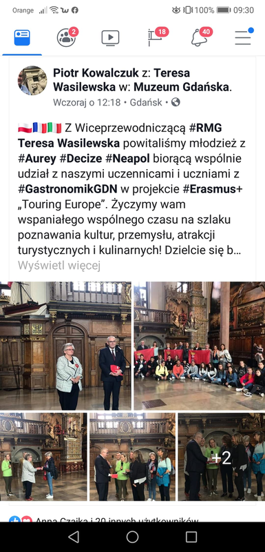 During all 4 mobilities there were organised meetings of city mayors or in Gdańsk vice presitent with Grand Tour'd Europe participants. Mayors expressed joy about Erasmus+ projects reaching their students and cities and had souvenirs for thier guests . In Gdańsk Italian teachers brought a gift from Mayor of Napoli to president of Gdańsk.